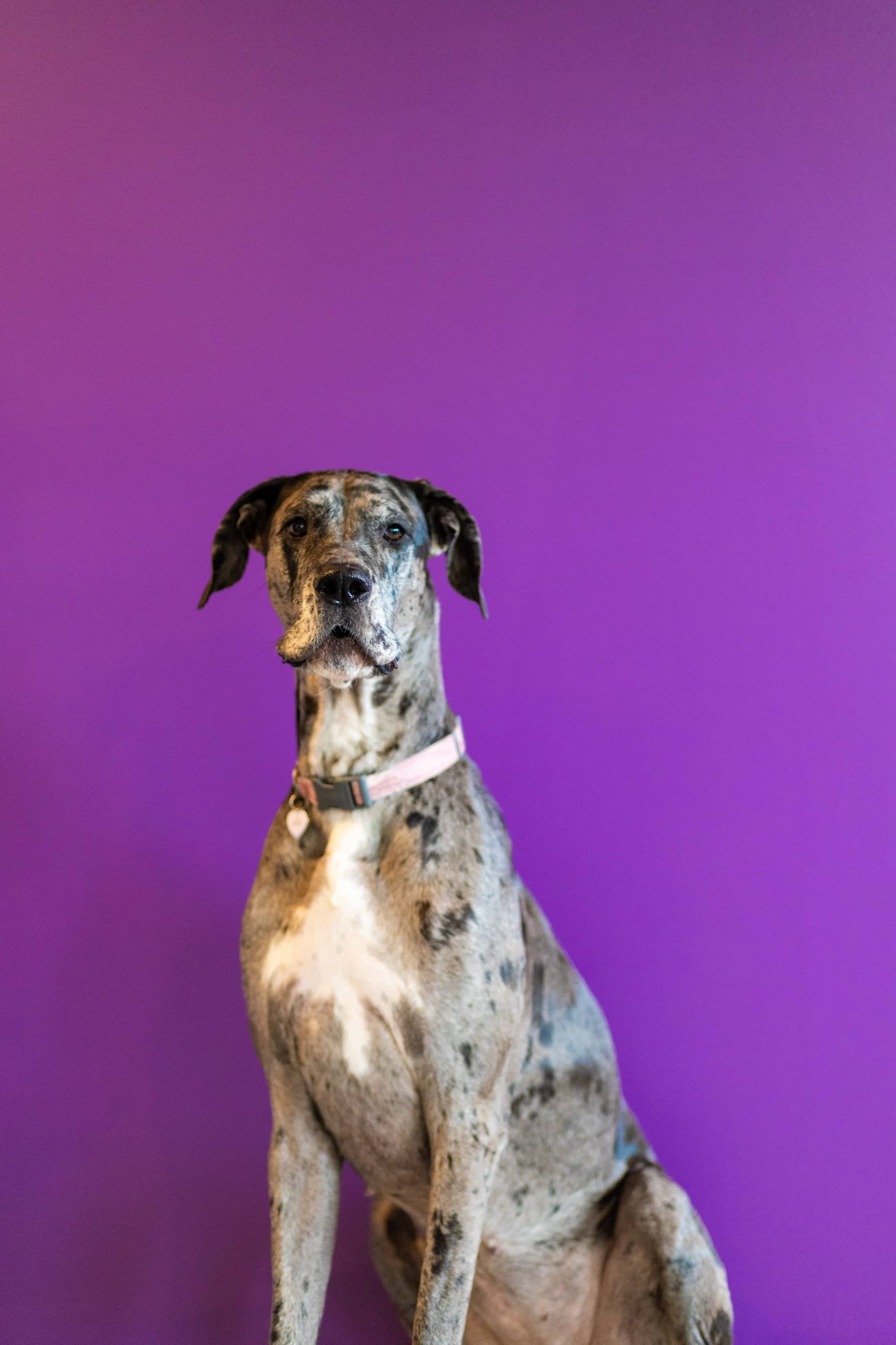 Ivy: A 3-year-old Great Dane rescued from a shelter in March, Ivy is at the shop every day, bringing a calm, comforting presence to both the team and our customers.